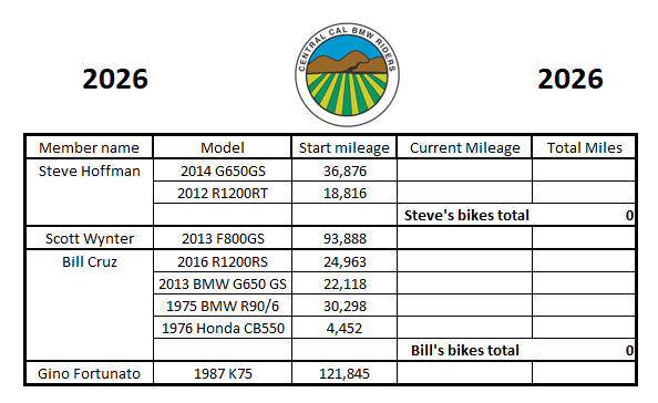 4. Current standings will be published in Monthly Exhaust News and on CCBR.org website in Yearly Mileage Contest in web forum.